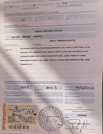 Barca con Licenza di Pesca completissima, 2 (due) GT, lunghezza 5,70 mt, larghezza 1,70, è una MARALUNGA 5.70, costruita nel Cantiere Cover di Sarzana. Motore FPT 20 CV. Il prototipo (da diporto), è omologato per la portata di 7 (sette) persone, per cui sicuramente si riesce ad ottenere 4-5 imbarchi per la Pesca. In possesso del Piano di Sicurezza, Attestato di conformità dello scafo, documenti del motore. Ecoscandaglio professionale e GPS. Tre batterie, autoclave per l'acqua dolce, doppi comandi. 18.000€ Barca PRONTISSIMA per la Pesca. NEL PREZZO E' COMPRESO IL TRASPORTO (ovunque in Italia, Isole comprese), IL PASSAGGIO DI PROPRIETA', (imposta di Registro 3% del valore di vendita e la trascrizione nei Pubblici Registri) E L'ISCRIZIONE NEL NUOVO UFFICIO. Antonio 333.7291919