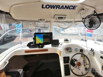 Accessori: doppia postazione di guida, trolling valve, wc chimico ( mai usato) 2 porta canne posizionabili su quattro piastre, 6 porta canne ad incasso, 1 porta canne a prua , sedia da combattimento in alluminio smontabile a prua, tenda parasole estraibile con 4 porta canne da riposo, vasca del vivo con temporizzatore, impianto acqua per lavaggio ponte, impianto acqua dolce, due pompe di sentina di cui una automatica, luci sotto plancetta di poppa, vhf icom, pilota automatico raymarine con telecomando, 2 prese elettriche per mulinelli ,varicello ancora , impianto elettrico per attacco allo 220v,ecoscandaglio lowrance hds 12 live + sonda B 275 LH-W, piastra in acciaio per motore elettrico