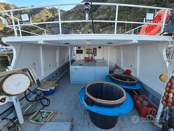 Vendesi Barca completamente Rimodernata Giugno 2024. L 13.18mt, l 4.00mt Stazza 9 gt. Motore Daewoo MD196. Cabinato Nuovo. Impianto elettrico 12/24/220V totalmente rifatto nuovo. 2 casse carburante con corrispettivi raccordi nuove. 2 casse acqua dolce. Cella frigo sottocoperta e cella frigo in coperta nuove senza usate. Bagno con Impianto scarico omologato. Cucina con lavello installate giugno 2024. 4 posti letto. Impianto audio Bose. Quota pesce spada. Pesca turismo attiva. Licenza: Palangaro derivante(LLD), Palangaro fisso(LLS),Reti da posta(GNS-GNC),Reti a circuizione (PS-LA), Piccola rete derivante (GND),Reti a tremaglio(GTR),Nasse e cestelli (FPO), incastellate-combinate(GTL),Cogolli e bertovelli(FYK). Strumenti: GPS, Ecoscandaglio, VHF. Salpa rete, salpa palamito. Cedesi attrezzature: Palangaro, Rete a circuizione, sciabiche,attrezzature pesca turismo. Barca visibile a Bagnara Calabra Info prezzo in privato.