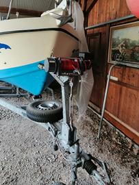 Barca a motore mt 5,50 con motore Johnson 70 cv 2 t, compresa di: ecoscandaglio, GPS cartografico a colori, CB, VHF. 2 pompe sentina. Completa di carrello basculante ELLEBI 1000 e verricello 4000 Kg nuovo.
