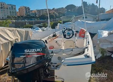 Vendo barca da pesca quicksilver 4,40m con motore Suzuki 25 cv (sflangiato 30) con tagliari regolari visionabili e circa 200h di utilizzo.