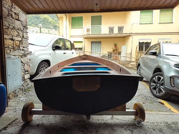 barchetta da pesca in vetroresina munita di motore 6 cavalli marca selva. dotata di 2 pannelli in compensato marino e carrello fatto su misura. lunghezza 3,5 metri circa. dotata di estintore e scaletta