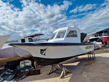 Vendo a soli 5000euro RIBASSO DA 13 disponibile CONSEGNA IN TUTTA ITALIA A tariffa vantaggiosa pagamento alla consegna per non utilizzo BARCA da pesca allestita e mai utilizzata cabina nuova realizzata 2 anni fà 3500 euro spesi solo per il refit realizzazione tetto e vetri + impianto elettrico Rifacimento pozzetto e legni interni. La barca viene venduta completa del motore 125 mercury 2 tempi perfettamente funzionante avviamento elettrico trim elettrico ampio pozzetto comoda cabina chiusa 2 posti letto barca autosvuotante Prezzo affare 5000euro barca + motore Possibilità di trasporto consegna barche gommoni vela BOAT TRANSPORT in tutta Italia Grecia albania croazia Montenegro Francia malta Sicilia Sardegna a tariffa agevolata.