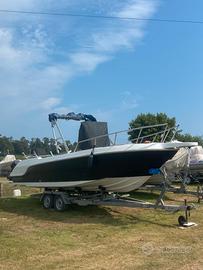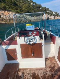 Vendesi barca da pesca open 7 metri fuori tutta x 230 larghezza, motore Mercury xs 150 cv iniezione con circa 500 ore completamente tagliandato con fattura , ,cuscineria rifatta nuova Maggio 25 ,doccetta esterna con serbatoio 200 litri , strumentazione di bordo ecoscandaglio e radio vhf