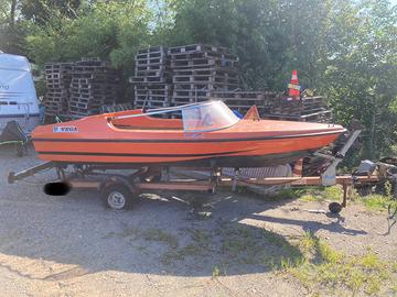 Vendo motoscafo in vetroresina marca Vega , senza motore, chiglia in discrete condizioni, ottima per facile restauro. Non rotta non bucata, galleggiante. Insieme do il carrello non più omologato e radiato, più ancora manetta di acceleratore.