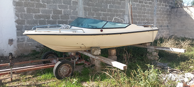 Vendo barca delfino open 4 metri, totalmente da ripristinare, bussola, impianto elettrico e GPS funzionavano prima di essere lasciata in deposito, interni in pelle bianca da sostituire, carrello in omaggio non omologato, la barca è in deposito aperto da 3 anni, ideale per pezzi di ricambio, nel caso interessati accordarsi per il ritiro telefonicamente, per informazioni rivolgersi al 3273973205 dario