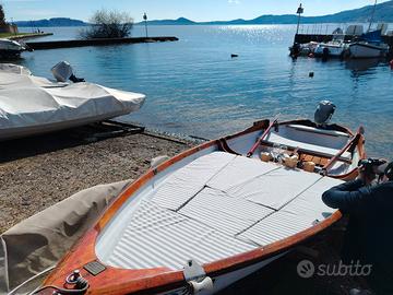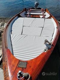 Lancia di 6 metri completamente rimessa a nuovo con motore Johnson 6 cavalli in perfette condizioni appena tagliandato Cuscineria e tendalino nuovi Presenti i suoi remi e serbatoio motore