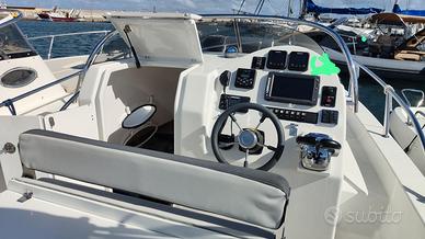 Cedo per inutilizzo bellissima Dolphin 25 WA, caratteristica principale robustezza di vetroresina e prua che consente di navigare anche mare formato. Lunghezza max 750 cm. Larghezza max 252 cm Omologata per 10 persone Potenza max 350 cv Categoria di progettazione B. Motorizzata n° 2 fuoribordo Suzuki 150 CV elettronici con 63 ore di navigazione. Dotazioni e accessori: Doccetta con autoclave lavandino sedile poggiarene oblò cuscineria esterna a cellula chiusa cuscineria interna puntale inox serbatoio carburante da 210 litri 2 plancette di poppa in acciaio e teak doppio staccabatteria pompa di sentina luci di navigazione e led pozzetto verricello elettrico con catena tendalino in acciaio inox WC elettrico con scarico in mare stereo Boss marine ecoscandaglio, GPS cartografico Lowrance.