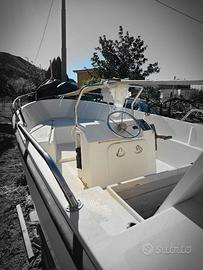 Vendo barca lancia simile la pescosa 5 mt con sottofondo ..consolle guida centrale con roll bar e tieniti bene tutto d acciaio .. scafo in ottimo stato e rinforzato con modifica poppa realizzata in vetroresina e acciaio in cantiere per montare motori gambo lungo+ gelcoat rifatto questa estate ..ampi gavoni .. molto stabile in acqua ..motore yamaha 25cv 4t con avviamento elettrico tenuto maniacalmente con tagliandi eseguiti ogni fine stagione ..serbatoio 30lt originale yamaha con galleggiante.. timoneria e manetta yamaha ..impianto elettrico con luci di cortesia a led e prese 12v ..4 porta canna da riposo e 2 da traina 2 palloni grandi blu per varo , remi, borsone completo di giubbotti boa,ancora e corda...barca veloce e comodissima sia per la pesca che per le passeggiate sottocosta, comoda anche per 5 persone .. In caso disponibile con aggiunta anche carrello basculante con libretto 550mt.. Vero prezzo affare! tenuta maniacalmente vendo per cambio genere...