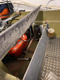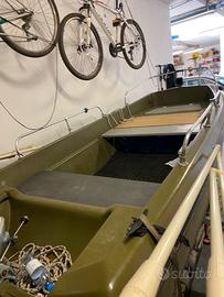 Vendo barca 4.70m con doppio fondo in vetro resina,motore evinrude 25 cv funzionante con libretto e carrello targato per il trasporto