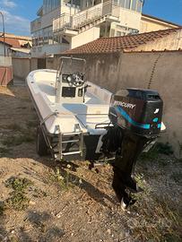 Si vende barca con motore e carrello da alaggio ( senza documenti). 4.5 m con pompa sentina, stacca batterie con selettore con due batterie, serbatoio benzina e predisposizione doccetta, ampio gavone in prua e a poppa, motore Mercury 40/60 4 tempi ( consumi irrisori) con 520 ore, fatto lavaggio acqua dolce, olio gambo olio motore girante e candele a luglio 2025, dopodiché ha percorso solo 50 ore. Trim funzionante e manetta originale.