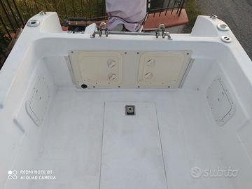 Barca di 5metri dei cantiere MINGOLLA. La barca e preparata per ogni tipo di pesca. -vasca del vivo di 54lt (igloo) montata su un supporto inox estraibile e montabile all'occorrenza. -presa elettrica per mulinello elettrico -staffa inox montata a prua per mettere sopra un salpa conzo elettrico. - tappo imbarco benzina sulla murata con serbatoio da 30 litri. -4 porta canne inox orientabili -Porta canne inox a riposo -Impianto elettrico nuovo - 2 batterie con stacca batteria orientabile -filtro decantatore benzina con bicchiere in vetro. Tanti altri accessori da vedere di persona. Valuto offerte da concordare dopo visione