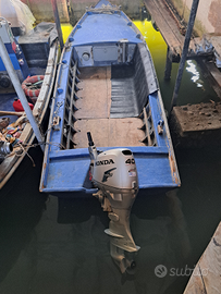 Barca in compensato marino, resinata e motore Honda 40/50 4t.immatricolata RV Vendo anche separatamente.