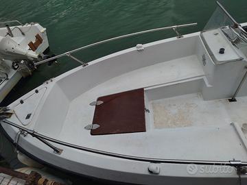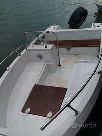 barca 4,60 autosvuotante con tutti gli accessori del 2025, stacca batteria, luci di via luci e di fonda,luci notturne x interno barca,pompa di sentina ,scatola sterzo, timoneria, impianto elettrico, pennello 12 pulsanti con voltimetro 2 porta canne in acciaio da traina e 6 da riposo. ecoscandaglio hook 5 con sonda 50/250.. supporto x motore ausiliario ,motore Mercury 3 cilindri carburatore 4 tempi benzina del 2001 già tutto rimessato x stagione 2026 (cedo anche carrello stradale omologato con verricello meccanico gommato al 100x 100 ..con l'aggiunta di 500euro) possibile provare barca e motore poiché l'imbarcazione è ormeggiata... poco trattabile