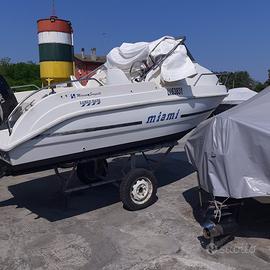 Per motivi di salute e a malincuore vendo semicabinato Miami 18 con motore Suzuki DF 70 hp 4t , usata solo 3 volte lo scorso anno dopo aver effettuato tagliando motore, antivegetativa, sostituito batteria, pompa di sentina, pompa benzina e filtro, cavetteria comandi, e rifatto telo di copertura.