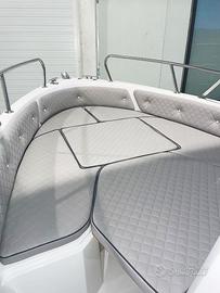 Grazie al passaggio laterale e alle sponde alte, offre un comfort superiore e una maggiore sicurezza a bordo. La prua è dotata di un ampio prendisole, che può essere facilmente trasformato in una zona conviviale aggiungendo l'asta di supporto per convertire uno dei pannelli in un grande tavolino.
