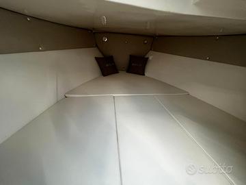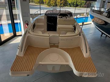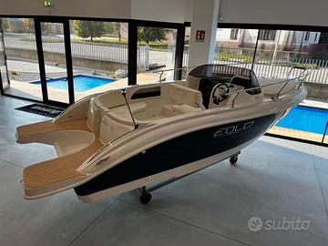 Eolo 6.4 EL, una barca elegante e confortevole. Ottimi spazi con due ampi prendisole per godersi al meglio le giornate in mare. La cabina con 2 posti letto consente di passare la notte a bordo senza farsi mancare nulla grazie alla possibilità di installare lavello, cucina e WC.
