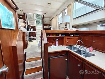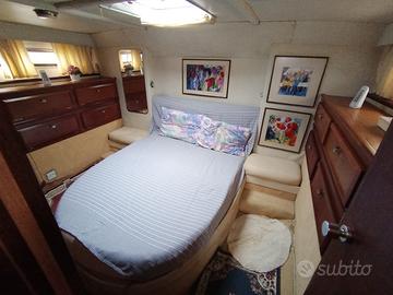 Metri 11,50 x 4 anno 1985, n. 2 motori Volvo TDAM60C a gasolio da 255 hp cad. uno. Interni in discrete condizioni. I motori necessitano di verifica scambiatori, revisione motorini e tagliando generale, ore motori 1579. N.2 cabine di cui quella di poppa con letto matrimoniale e bagno in suite. Cabina di prua con bagno con doccia separata, cucina completa, dinette con due divani e altri due posti letto. Pozzetto spazioso, prendisole di prua e Fly. Barca con interni molto spaziosi introvabili su una 36 piedi. Trasmissione in linea d’asse, plancetta di poppa per il bagno e molto altro. Barca ferma da due anni in rimessaggio, con motori funzionanti.