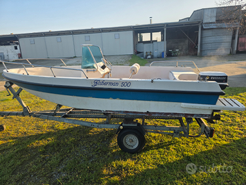 Barca Fisherman 500,con motore 25cv, carrello gommato nuovo, tutto in buono stato, prezzo trattabile.