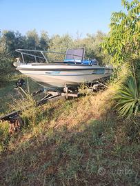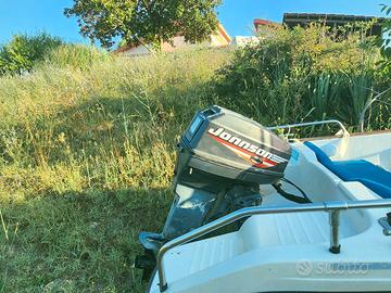 Barca Fisherman 530, con motore Johnson 737 40 cv con documenti, manutenzionato, con gruppo manetta e trim elettrico. Telo di copertura nuovo. Ampio prendisole la cui tavola centrale si trasforma in comodo tavolo, pompa di sentina, cuscineria nuova appena installata, gruppo sterzo nuovo, batteria da 100 ah nuova da installare, serbatoio acqua con doccetta elettrica.