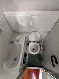 Tendalino, cuscineria completa, WC marino, doccetta esterna, tavolo esterno, prendisole e scaletta bagno