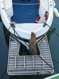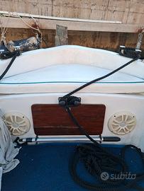 gozzo in vetroresina 6 mt + spiaggetta di 80 cm, larghezza 2 mt con motore eb diesel Nanni 12 cv perfettamente funzionante. Impianto elettrico nuovo con cavi per uso marino sovradimensionati, pannello solare 200 w con regolatore di carica MPPT + Cyrix-CT Victron, batteria motore + batteria servizi con staccabatterie. Motorino avviamento e pompa acqua nuovi, prese a mare nuove, doppia pompa di sentina di cui una automatica, quadro elettrico nuovo con fusibili automatici con protezione termica, doppia presa usb, presa 12 volt, presa accendisigari, interruttori IP68 CARLING, radio BOSS con casse stereo, indicatore di carburante. Doccetta acqua dolce, due portacanne, rollbar in acciaio 316 ribaltabile, ecoscandaglio, cuscineria completa, ampio prendisole, gavoni con chiusure a chiave, ampio gavone di prua, illuminazione gavone di prua e del vano motore; illuminazione pozzetto, tendalino prua e poppa, ancora 6 kg con catena da 8mm, scaletta di risalita ribaltabile, luci di via e di fonda
