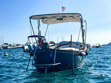 Dispone di 5 parabordi per lato più uno di prua , fatto a mano in corda lavorata.