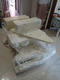 Gozzo sorrentino in legno con poppa quadra lunghezza 7.mt e larghezza 2.20 cm. E' stato realizzato il trattamento west syatem su tutta l'opera viva. Completa di cuscini nuovissimi ancora con imballaggio da posizionare su tutta la lunghezza barca, realizzati con materiale a cellula chiusa spessore 8/10 cm. Completa di linea asse, elica e cuscinetti basamento linea asse nuovi. 1 autoclave, 2 pompe di sentite, serbatoio acciaio gasolio e acqua, quadro elettrico, radio e VHF, il tutto da montare. causa interruzione progetto.NO MOTORE . la barca si trova a Varcaturo, 3389547913. prezzo 4500 assolutamente NON TRATTABILE.