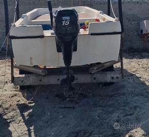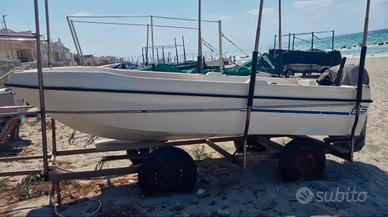 Si vende ottima barca in vetroresina lunga 3,70mt motorizzata con un mercury 15cv 4 tempi (sempre tagliandato). Compreso nel prezzo il carrello su misura totalmente in acciaio inox e in oltre si cede verricello a batteria 12V per alaggio. Il natante si presenta in ottime condizioni e da come si può notare in foto è stata realizzata una copertura a prua in compensato marino e per finire il calpestio dello scafo è stato rinforzato. Vendo per passaggio a scafo più grande. Prezzo trattabile.