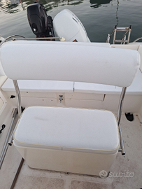 Vendo GS Nautica open 5,50 anno 2007 autosvuotante in ottime condizioni. Motore Suzuki ARI 40/70 immatricolato 31 luglio 2025 con 20 ore di navigazione e Motore ausiliario Mercury 4 cv dicembre 2022 con zero ore di navigazione. Trim elettronico. Pompa di sentina automatica e manuale, doppia batteria, ecscandaglio Garmin striker vivid 7sv, serbatoio acqua dolce, 6 porta canne, tappezzeria una parte nuova e prendisole seminuovo. Regalo telo in pelle a copertura dell'intera barca. Doppia ancora. Serbatoio 50 litri, filtro decantatore ed appena cambiata la pompetta della benzina. Dotazioni di bordo entro le 6 miglia. La vendo per scarso utilizzo. La barca è visibile al Porticciolo di Ostia. Prezzo un po trattabile.