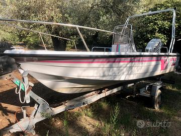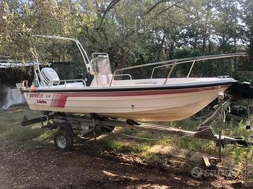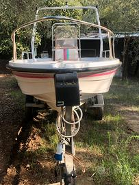 La barca tipo open Hellas Paradise da 4,50 mt, avente motore Johnson 40 cv [il Trim non è funzionante],