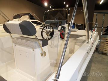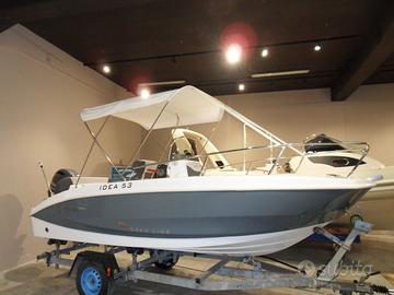 Barca usata Idea Marine 53 anno 2022 con motore Yamaha F100LB anno 2024 con sole 70 ore di moto e in garanzia fino al 2029. La barca è accessoriata con tendalino in acciaio inox, timoneria idraulica, tavolino a prua, impianto doccia, serbatoio carburante fisso con indicatore, GPS cartografico a colori Garmin Echomap 72 cv UHD2 , luci di via, pompa di sentina, scaletta di risalita telo di copertura totale. Scafo perfettamente lucido e carena senza antivegetativa.