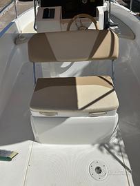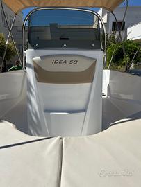 Barca Idea 58 open line del 2018 completa di cuscineria originale, batteria con staccabatteria, presa USB 12 V, impianto doccia, eco-gps Garmin, Eco Striker 5, luci di navigazione, antifurto SafeFleet, serbatoio acqua e carburante, tavolo pic-nic poppa, tendalino sole in acciao inox, scaletta inox, bussola, pompa di sentina , motore yamaha 40/60 anno 2018 con sole 80 ore di moto .
