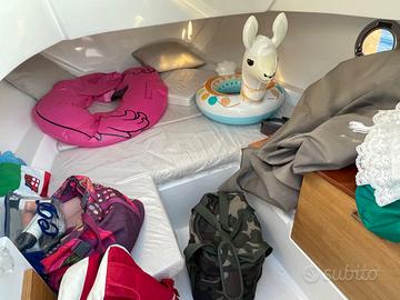 Idea Marine 58 Wa del giugno 2019 fiancate Grigie, scaletta risalita 3 scalini bagno w.c nautico, motore yamaha f40/70 con circa 56 ore di moto. Allestimento con cuscineria prendisole di prua, cuscineria seduta guida e seduta di poppa con tavolino tec pic-nik, cover copri consol, cover copri sedile di guida e sedile di poppa,,nr. 2 gavoni , cuscineria interna cabina con tavolino cabina, WC marino, plancia con strumentazione motore, GPS cart. colore, impianto stereo con Bluetooth,, impianto doppia batteria con sezionatore, serbatoio benzina interno inox con imbarco e filtro separatore , impianto acqua dolce con doccetta fredda a poppa, pompa di sentina, illuminazione led blue sosta e illuminazione led bianco freddo, illuminazione cabina e presa 12 volt e 220 per sosta in porto kit 6 parabordi, ecc, imbarcazione in eccellenti condizioni sempre rimessata al coperto e tagliandata yamaha con 5 anni di garanzia motore yamaha e dotazione di bordo.