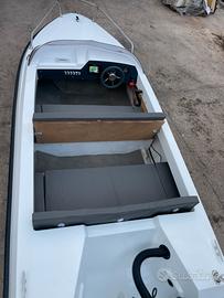 Vendo splendida barca completamente riverniciata (colorazione: azzurro BMW M2 con coperta bianco lucido) e dotata di numerose migliorie recenti. Ideale per chi cerca un mezzo affidabile, comodo e moderno senza rinunciare allo stile. -Impianti e accessori elettronici: Ecoscandaglio Simrad GO 5 XSE completo di trasduttore -Galleggiante NMEA 2000 integrato -Pulsantiera retroilluminata a LED -Luci di via e luce 360° nuove -Luci subacquee + luci di cortesia -Componenti tecnici e comfort: - Serbatoio in acciaio inox da 40 litri con bocchettone d'imbarco esterno -Timone nuovo - Pompa di sentina -Batteria nuova - Plancia comandi in finto carbonio -Struttura e tappezzeria: -Tappezzeria completamente rifatta - Sedili reclinabili completamente, entrambi con gavoni integrati - Bottazzo nuovo in gomma nera - Bitta a scomparsa oParabrezza in plexiglas fumè nuovo - Estetica e finiture: - Verniciatura completa professionale - Scafo azzurro BMW M2 - Coperta bianco lucido - Ottima presenza, look moderno e sportivo "Perfetta per uscite giornaliere, pesca o relax in mare. Barca pronta all'uso, nessun intervento da fare. per info o foto aggiuntive non esitate a contattarmi Omologata per 4 persone , lunghezza 4.20 m In regalo telo per coprirla Prezzo trattabile preferibilmente dopo visione