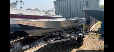 vendo per cambio progetto barca canadian 370 quindi in alluminio . Come si vede dalla foto pianalata fino a metá con capiente gavone centrale perfetta per essere usata come bass boat e vano anteriore per spazio ancora. La barca è in perfetto stato senza alcun difetto e anti alga fatto nel 2025. Possibile venderla con evinrude 15 cavalli appena tagliato che parte al primo colpo e non ha alcun lavoro da fare. tag canadian , italmarine, selva, bassboat, barca, cofano, mercury, johnson, suzuki, yamaha
