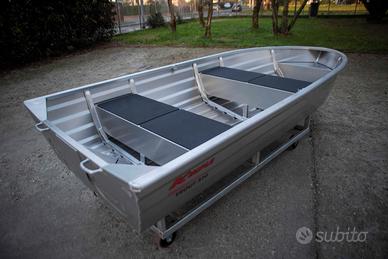 Barca Leggera e stabile. Si trasporta facilmente su furgone o portapacchi. Ideale per pesca sottocosta in mare , pesca in laghi e fiumi. Tutta saldata NO RIVETTI.