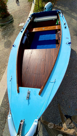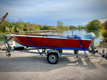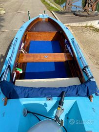Barca in legno 5mt realizzata a mano da maestro d'ascia. Completa di dotazione di bordo (salvagente, luci, cime), carrello (appena revisionato) e tendalino. Motore Honda 4 tempi 20cv come nuovo.