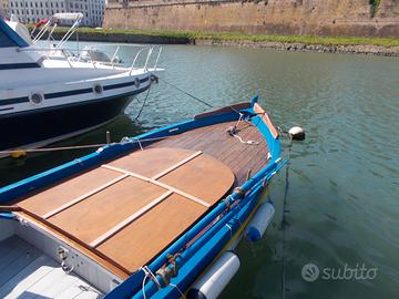Vendo gozzo in legno nuovo. Lunghezza f.t. 5,50 - larghezza mt 1,80. Motore nuovo. Costruito dall'ultimo maestro d'ascia di Livorno. Coperta in Iroko, pompa sentina, fanali di via, serbatoio acciaio inox. Visibile a Livorno. Motore Mitsubishi Craftsman Marine Diesel 20 hp. Per maggiori informazioni contattare Fulvio al numero 340.1053712.