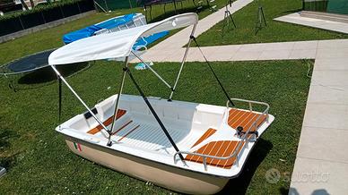 Possibilità di montare motore fuoribordo fino a 5cv , dimostrazione con video. Natante adatto a chi desidera una barchetta leggera , da pesca e traina nel sottocosta in tranquillità.