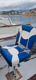 Batteria AGM 80ah, pannello solare di mantenimento carica, circa 7 porta canne, ciambella salvataggio, ancora galleggiante. Volante nuovo con pomello rotante, seggiolino nuovo 360°, regolabile in altezza. Parabordi (anche di più di quelli che servono).
