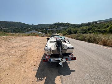 Vendo Barca in Vetroresina 4,20 m con Motore Tohatsu 25 CV + Carrello - Euro 3000 carrello revisionato e rimatricollato Rimorchio portata 450 kg Scadenza Luglio 2027!!