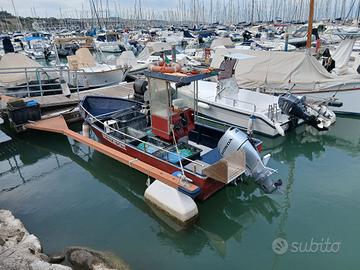 Vendo barca Marlin craft con motore honda 40/70 anno 2025(100) ore + motore ausiliario honda 6 cv. (6) ore di moto +generatore Lancin 6 cv. nuovo per propulsione idraulica per verricello a nastro,strumento Garmin gps+eco+tasduttore,guida idraulica nuova e attrezzatura da pesca comprendente palamiti per spigole orate ombrine,retine di diverse tipologie e maglie , cestini e nasse, 100 kg. di lima piombata , scivolo in acciaii per reti lato destro.La barca e' strutturata per la sicurezza a bordo e per svolgere agevolmente operazioni di salpo e calo da un unica persona a bordo , su richiesta video della barca in navigazione e in pesca. Per informazioni chiamare al 338 1295017 Roberto.