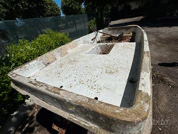 Vendo barca in vetroresina da 4,50 metri circa, da restaurare, completa di carrello stradale.