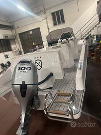 Barca Infinity WA GT con luci di via, pompa di sentina, scaletta risalita , salpa ancira , 50 m di catena , puntale in acciaio , serbatoio carburante da 100 L , diccia completa di autoclave e serbatoio, lavello sotto seduta , luci intene cabina, ecoscandaglio con GPS , motore Honda 115 cv con manetta elettronica, strumento benzina, sitek su plancette e tutto il pozzetto, idroguida, doppia batteria, stacca batterie