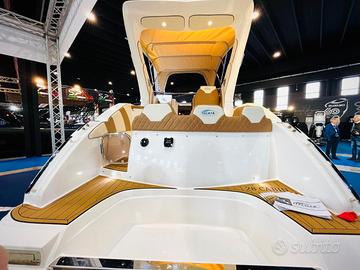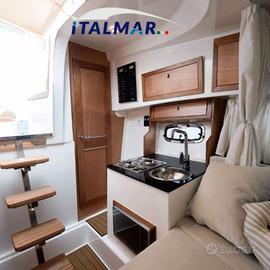 CABIN 28. La stabilità è la caratteristica principale di questo sorprendente Cabin. Che sia destinata ad un uso particolarmente sportivo o alle piacevoli giornate in mare il CABIN 28 saprà conquistarvi e meravigliarvi per la sua versatilità. Curata nei minimi dettagli, progettata per lunghe traversate e per ospitare in gran confort i suoi occupanti viene fornita completa di tutti gli optional disponibili. Le potenti motorizzazioni a scelta gli permettono di raggiungere velocità vertiginose, scivolando con facilità e agilità in acqua per la soddisfazione anche del cliente più esigente. Con una capienza di 8 persone che potranno usufruire degli ampi prendisole di prua, poppa e del generoso pozzetto con comodissimi divani è ottimale per le giornate in mare. Concepita per la massima ottimizzazione degli spazi interni riesce a regalare comfort e qualità di vita a bordo senza eguali. SPECIFICHE TECNICHE: POSTI LETTO2+2 LUNGHEZZA F.T.8,20 mt LARGHEZZA F.T.2,70 mt PESO SENZA MOTORE 2,400 kg TIPO DI MOTORI INSTALLABILI :Fb POTENZA MAX INSTALLABIL 400 cv / 294 Kw POTENZA CONSIGLIATA300 cv / 220,7 Kw NUMERO MOTORI INSTALLABILImax 2 NUMERO PERSONE TRASPORTABILI 8 TUTTI I NOSTRI PRODOTTI SONO FINANZIABILI ITALNAUTICA CONCESSIONARIA UFFICIALE ITALMAR CANTIERI NAUTICI italnautica@gmail.com CONTATTI: UFFICI : MASSIMILIANO