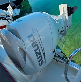 La barca è motorizzata con Fuoribordo Suzuki 100 HP 4 Tempi bianco, 34 nodi e consumi bassissimi,