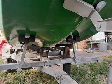 Barca in Robusta Vetroresina da 3.80 mt, chiglia "ala di gabbiano". Carrello Umbria Rimorchi Kg 400 basculante pneumatici nuovi e ruota di scorta. Motore Elettrico MotorGuide 12V 46Libre con certificato e batteria da trazione 210Ah ( utilizzata 10 Volte )come da foto. Ombrelloni a poppa e prua girevoli a 360°, 2 reggi canne; ossigenatore; 2 ancore con corde da 30mt; salvagenti fiocine e vari altri accessori. Utilizzata pesca al lago, traina Luccio e Spinning. No Ecoscandaglio Vendita in Blocco!!!!!! Barca pronta per essere utilizzata!!!!!!! 2000€