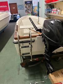 Vendo per inutilizzo barca lancia da 3.40 con murata alta, completa di motore di 9,8 cv tohatsu, batteria, mini impianto elettrico, scaletta di risalita, remi, porta canna in acciaio, teflon nella carena per eventuale salita in spiaggia, possibilità' di carrello.