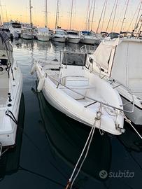 Vendo barca manó 550 murate alte adatta alla pesca pronta alla boa 2 batterie nuove comprate l'anno scorso con coperchi batteria stacca batteria nuovo a 3 vie ,serbatoio acqua con doccetta a poppa , tavolino a prua serbatoio benzina grande sotto console con riempimento laterale esterno,stereo con casse nuove istallate l'anno scorso ruota del timone nuova, pompa di sentina nuova filtro benzina nuovo ha un motore tohatsu 40 cv 2 tempi trim elettrico con lavori appena eseguiti girante,olio ecc la barca si trova ormeggiata a porto Torres al cormorano cedo insieme subentro posto barca misure 8 metri x 2,50 pagato per tutto l'anno. ho solo questa foto se siete interessati venite a vederla vuole solo pulita (messa oggi in acqua ) prima era a terra su carrello